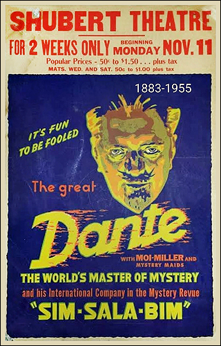 জাদুকর Dante, যিনি আগে থার্সটন (Thurston)-এর সাথে কাজ করতেন, পরে স্বতন্ত্রভাবে খ্যাতি অর্জন করেন। তিনি 'Sim Sala Bim' নামে একটি জনপ্রিয় রোড শো তৈরি করেন, যেখানে দ্রুত গতির বিভ্রম জাদুর এক বিশাল সম্ভার ছিল। এই শো ইউ.কে. ও ইউরোপে ব্যাপক সাফল্য পায়। দ্বিতীয় বিশ্বযুদ্ধ শুরু হলে দান্তে আমেরিকায় ফিরে আসেন এবং ১৯৪০ সালে নিউ ইয়র্কে 'সিম সালা বিম' আবার মঞ্চস্থ হয়। এই সুদর্শন, হাসিখুশি জাদুকর পরবর্তী এক দশক পর্যন্ত মঞ্চ এবং চলচ্চিত্রে সক্রিয় ছিলেন। পরে তিনি ক্যালিফোর্নিয়ায় জাদু থেকে অবসর নেন এবং ১৯৫৫ সালে সেখানেই মৃত্যুবরণ করেন।