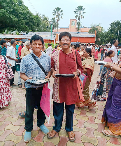 তারপরে আমাদের দীক্ষাগুরু শ্রীমৎ স্বামী দিব্যানন্দজী মহারাজের দর্শন, প্রণাম ও আশীর্বাদ গ্রহণ। আজকে 'গুরু পূর্ণিমাতে' উপস্থিত সম্মিলিত প্রতিটি ভক্তদের প্রতিটা ক্ষণ, প্রতিটা পল, প্রতিটা মুহূর্ত, প্রতিটা হৃদয়তন্ত্রীতে এক অসাধারণ আধ্যাত্মিক আনন্দানুভূতি মনকে কানায় কানায় ভরে দিয়েছিল। গুরুদেবকে প্রণাম তারপর সারিবদ্ধভাবে নিয়মমাফিক প্রসাদ গ্রহণ (সুন্দর মিষ্টির প্যাকেট)। দুপুর ১১টার পরে সারিবদ্ধ ভক্তদের লাইন করে সুন্দর পরিবেশিত মহাপ্রসাদ গ্রহণ। উপাদেয় সেই মহাপ্রসাদ। প্রত্যেকের হাতে মহাপ্রসাদের থালি। সেই থালিতে ছিল পোলাও, আলুর দম, আমের আচার, সুস্বাদু গাঢ় ডাল, একটি গোলাপ জাম মিষ্টি। প্রসাদ বিতরণে অংশগ্রহণ করেছেন মিশনের মহারাজ, ব্রহ্মচর্য মহারাজ ও গুণী ভক্তরা।