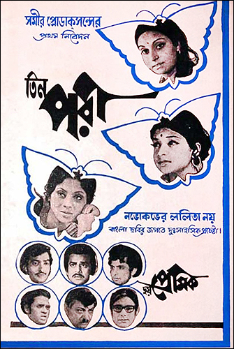 দিলীপ বন্দ্যোপাধ্যায় পরিচালিত 'তিন পরী ছয় প্রেমিক' (১৯৭৭) ছবির পোস্টার।