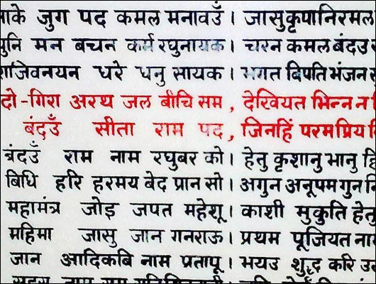 ভারতের চিত্রকূটের মানস মন্দিরে 'নাম-বন্দনা' (রামের নাম উচ্চারণ)-এর শুরুতে 'রামচরিতমানস'-এর কিছু শ্লোক।