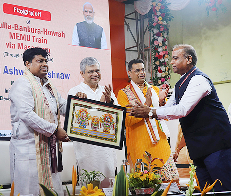 সংবাদদাতা - সমীরণ ভৌমিকঃ আজ শনিবার ইংরেজীর ২৮.০৬.২০২৫ তারিখে বহু প্রতীক্ষিত পুরুলিয়া-বাঁকুড়া-হাওড়া (ভায়া মসাগ্রাম) নতুন মেমু ট্রেন পরিষেবার শুভ সূচনা করলেন কেন্দ্রীয় রেলমন্ত্রী এবং তথ্য ও সম্প্রচার মন্ত্রী ও ইলেকট্রনিক্স ও তথ্যপ্রযুক্তি মন্ত্রী অশ্বিনী বৈষ্ণব মহাশয়। অসম্ভবকে সম্ভব করার আরেক নাম রেলমন্ত্রী অশ্বিনী বৈষ্ণব। স্বামী বিবেকানন্দের মুখনিঃসৃত অমৃত বাণী 'জীবনে এসেছ যখন একটা দাগ কেটে যাও', এই আদর্শকে পাথেয় করে তিনি কাজ করে চলেছেন ভারতের উন্নয়নের স্বার্থে।