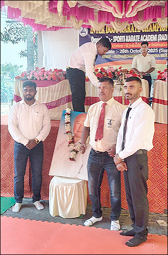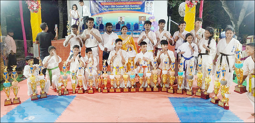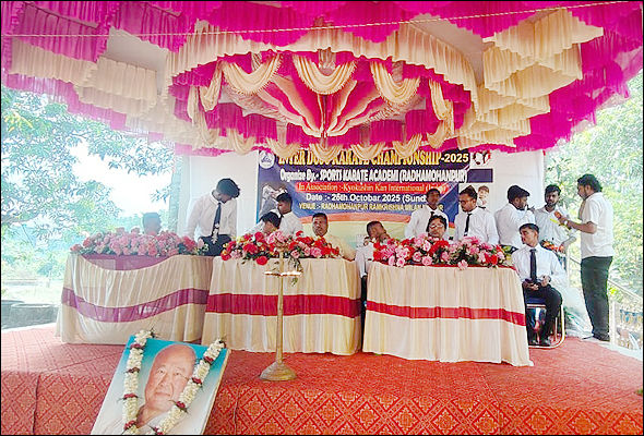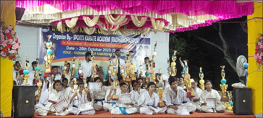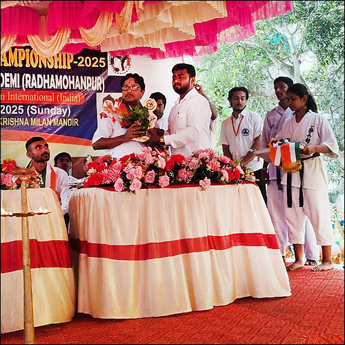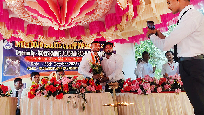 সংবাদদাতা - সমীরণ ভৌমিকঃ সম্প্রতি 'স্পোর্টস ক্যারাটে একাডেমি' (রাধামোহনপুর)-এর পরিচালনায় আন্তঃ দোজো কারাটে প্রতিযোগিতা ২০২৫ (Inter DOJO Karate Championship 2025) অনুষ্ঠিত হল। যেটি 'কেয়োকুশিন কান ইন্টারন্যাশনাল' (ইন্ডিয়া) দ্বারা পরিচালিত। গত ২৬ অক্টোবর, রবিবার, সকাল ১০:৩০ মিনিটে, উক্ত অনুষ্ঠানটি অনুষ্ঠিত হয়ে গেল পশ্চিম মেদিনীপুর জেলার, ডেবরা ব্লকের রাধামোহনপুর, রামকৃষ্ণ মিলন মন্দির প্রাঙ্গণের 'বিবেক মঞ্চে'। প্রদীপ প্রজ্জ্বলনের মাধ্যমে অনুষ্ঠানটি আরম্ভ হয় এবং অতিথিদের চন্দনের ফোঁটা, ব্যাজ, মেমেন্টো দিয়ে বরণ করে নেওয়া হয়। তারপরে মঞ্চে একটি মনোজ্ঞ নৃত্য পরিবেশন করে শিশুশিল্পী ও কারাটে প্রতিযোগী রূপসা গুইন। এই 'কারাটে' প্রতিযোগিতায় পশ্চিম মেদিনীপুর জেলার বিভিন্ন ব্লক থেকে আসা প্রায় ১০৫ জন প্রতিযোগী অংশগ্রহণ করেছেন। পুরুষ প্রতিযোগীর সংখ্যা ছিল প্রায় ৬৫ জন এবং মহিলাদের সংখ্যা ছিল প্রায় ৪০ জন। এই ক্যারাটে প্রতিযোগিতায় ২৪টি ইভেন্ট ছিল। এই মহতী 'বিবেক মঞ্চে' উপস্থিত ছিলেন Rensi Shihan মিহির বাগ মহাশয় [(Country Representive India) 5th Dan Black Belt (Japan) Kyokushen Kan International]। মঞ্চে উপস্থিত ছিলেন Sensei বিবেক পাল [2nd Dan Black Belt (Spain), ডিস্ট্রিক্ট সেক্রেটারি, পশ্চিম মেদিনীপুর ( Kyokushin Kan India)]। উপস্থিত ছিলেন অসিত কুমার হোড়, সেক্রেটারি, রাধামোহনপুর রামকৃষ্ণ মিলন মন্দির। উপস্থিত ছিলেন অখিলেশ মোদক (রানীগঞ্জ)। মঞ্চে উপস্থিত ছিলেন এই কর্মযজ্ঞের কর্ণধার তাপু চক্রবর্তী মহাশয়। এছাড়াও মঞ্চে উপস্থিত ছিলেন Karate প্রশিক্ষক Sensei ডেভিড ভারগেস, সূর্যকান্ত পাল, রূপম জালুয়া, রাজদীপ গুইন, সাগর পাত্র, আগন রাও ও অভিজিৎ মেটলা প্রমুখ গুণীজনেরা।