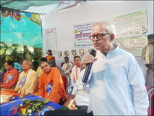 সংবাদদাতা - সমীরণ ভৌমিকঃ পূর্ব মেদিনীপুর জেলার, পাঁশকুড়া ব্লক, হাউরের নবগঠিত 'ঘোষপুর উচ্চ বিদ্যালয় প্রাক্তনী কল্যাণ সমিতি' ৮ই নভেম্বর, ২০২৫, শনিবার, বেলা ২ ঘটিকার পুন্যলগ্নে ঘোষপুর রাসমঞ্চ প্রাঙ্গন সংলগ্ন মঞ্চে অনুষ্ঠিত হয়ে গেল উক্ত বিদ্যালয়ের কৃতী প্রাক্তনীদের সম্বর্ধনা জ্ঞাপন ও দুঃস্থ মেধাবী এবং দুরারোগ্য ব্যাধিতে আক্রান্ত প্রাক্তনীদের আর্থিক সহায়তা প্রদান করার একটি মঙ্গলময়, কল্যাণকর মহতী অনুষ্ঠান। উক্ত মহতী সভায় গৌরবময় উপস্থিতি ছিল উদ্বোধক পূজনীয় স্বামী মহাক্রমানন্দ মহারাজের, অধ্যক্ষ, রামকৃষ্ণ মঠ ও মিশন, (তমলুক)। মহারাজজী প্রথমে প্রাক্তনী কল্যাণ সমিতির পতাকা উত্তোলন করেন। উপস্থিত মা বোনেরা উলুধ্বনি ও শঙ্খধ্বনির মাধ্যমে এই অনুষ্ঠানটিকে প্রাণোচ্ছ্বল ও আবেগমথিত করে তোলেন। মঞ্চে প্রধান অতিথির আসন অলংকৃত করেন মাননীয় বিপ্লব রায় চৌধুরী, মন্ত্রী (পশ্চিমবঙ্গ সরকার)। ছিলেন সম্মানীয় বীরেন্দ্রনাথ মন্ডল, প্রাক্তনী ও গণিত বিষয়ে আন্তর্জাতিক খ্যাতিসম্পন্ন অধ্যাপক (গোল্ড মেডালিস্ট), যিনি বর্তমান ৮২ বছর বয়সেও কলিকাতা 'রাজাবাজার বিজ্ঞান কলেজের' সাথে ওতপ্রোতভাবে যুক্ত। মঞ্চে উপস্থিত ছিলেন সম্মানীয় ডঃ নারায়ণ চন্দ্র মাইতি, প্রাক্তন অধ্যক্ষ, মহিষাদল মহিলা মহাবিদ্যালয়, ছিলেন ডঃ গোবিন্দ প্রসাদ কর, বিশিষ্ট শিক্ষাবিদ ও অধ্যাপক, বাজকুল মহাবিদ্যালয়, উপস্থিত ছিলেন মাননীয় ডঃ চিত্তরঞ্জন মাইতি, সাহিত্যিক ও লোক সংস্কৃতি গবেষক। উপস্থিত ছিলেন সম্মানীয় বাসুদেব মিশ্র, প্রাক্তন প্রধান শিক্ষক, ঘোষপুর উচ্চ বিদ্যালয় (উঃ মাঃ), ছিলেন সম্মানীয় ধনঞ্জয় মন্ডল চলচ্চিত্র নির্মাতা। উপস্থিত ছিলেন মাননীয় ডঃ সুকেশ মন্ডল, সাহিত্যিক ও প্রকাশক। মঞ্চে উপস্থিত ছিলেন অধ্যাপক ডঃ বাণীপ্রসাদ দে, বিভাগীয় প্রধান (বাংলা), বিদ্যাসাগর বিশ্ববিদ্যালয়, পশ্চিম মেদিনীপুর। এই গুণীজন সমৃদ্ধ মঞ্চে উপস্থিত ছিলেন 'ঘোষপুর উচ্চ বিদ্যালয় প্রাক্তনী কল্যাণ সমিতি'র সভাপতি সম্মানীয় ননীগোপাল আদক, প্রাক্তন প্রধান শিক্ষক পুলসিটা হাইস্কুল, উপস্থিত ছিলেন প্রাক্তনী মাননীয় বিনোদ বিহারী সামন্ত, প্রাক্তন ব্যাংক ম্যানেজার (এসবিআই)।